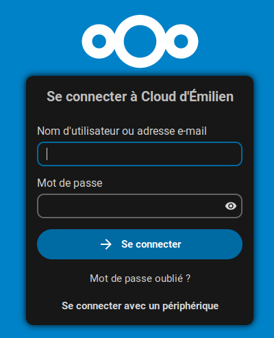 - Se rendre à l'adresse https://echapon.ynh.fr/nextcloud/